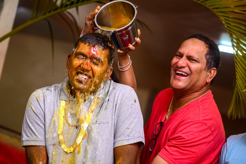 This ceremony happens fro the bride and the groom separately. The bride and groom are made to seat on a wooden plank and five chosen women smear oil by using grass stems and apply a green gram paste. They will then do an aarti made of lime water mixed with turmeric to ward off the evils.